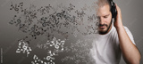 Musik hören mit Kopfhörern - Mann Musiknoten