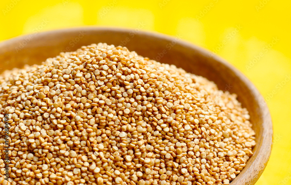 Raw quinoa seeds in a bowl.