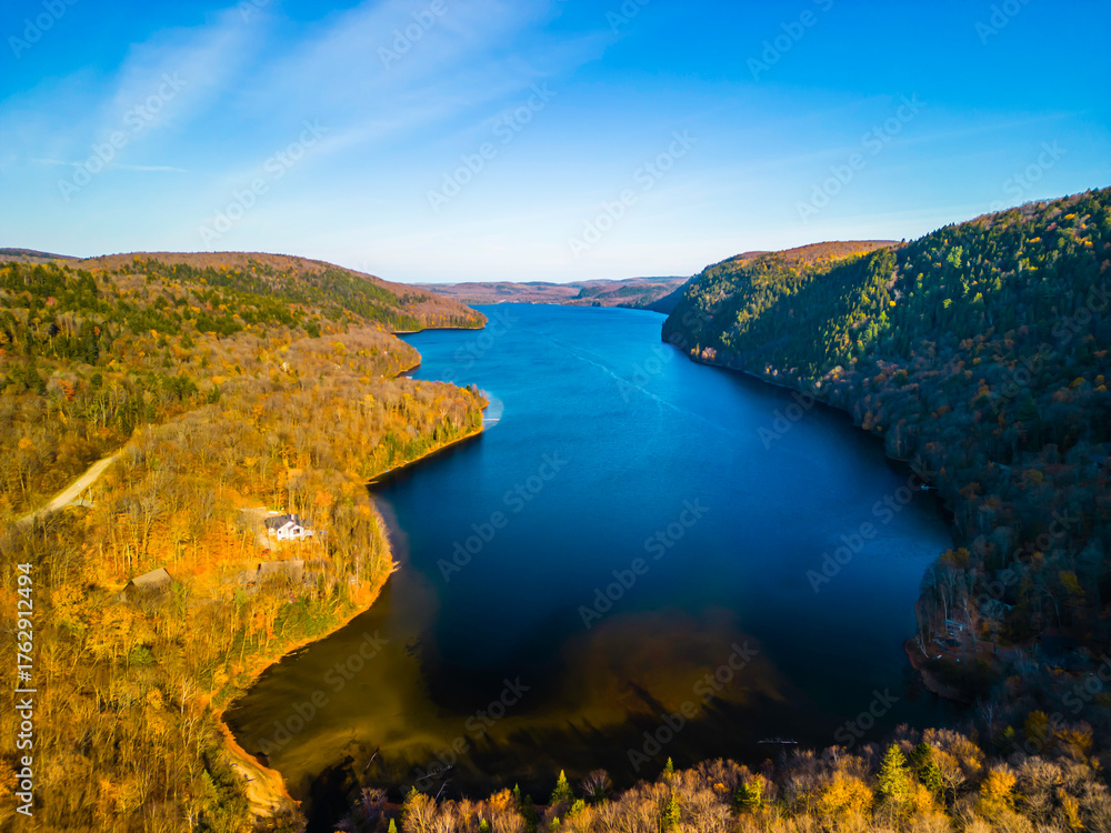 Lac-du-Sable, Canada - Oct.19 2025: The colourful autumn foliage view of Lac-du Sable in Quebec Canda