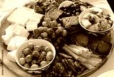 Fleisch- und Käseplatte mit Oliven, und Trauben