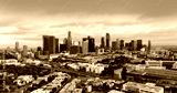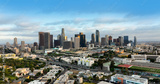 Aerial panorama of Los Angeles city skyline with skyscrapers. Drone shot of downtown Los Angeles.