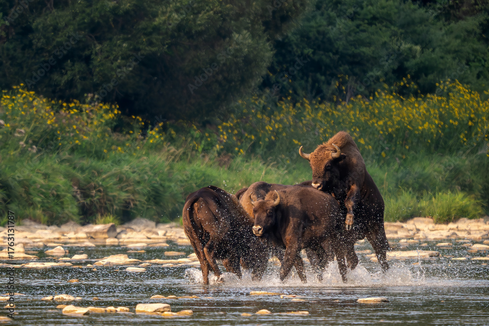 European Bison - Bison bonasus, large European even-toed ungulate native to North and East European forests and woodlands, Poland.