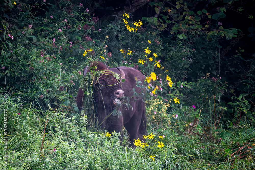 European Bison - Bison bonasus, large European even-toed ungulate native to North and East European forests and woodlands, Poland.