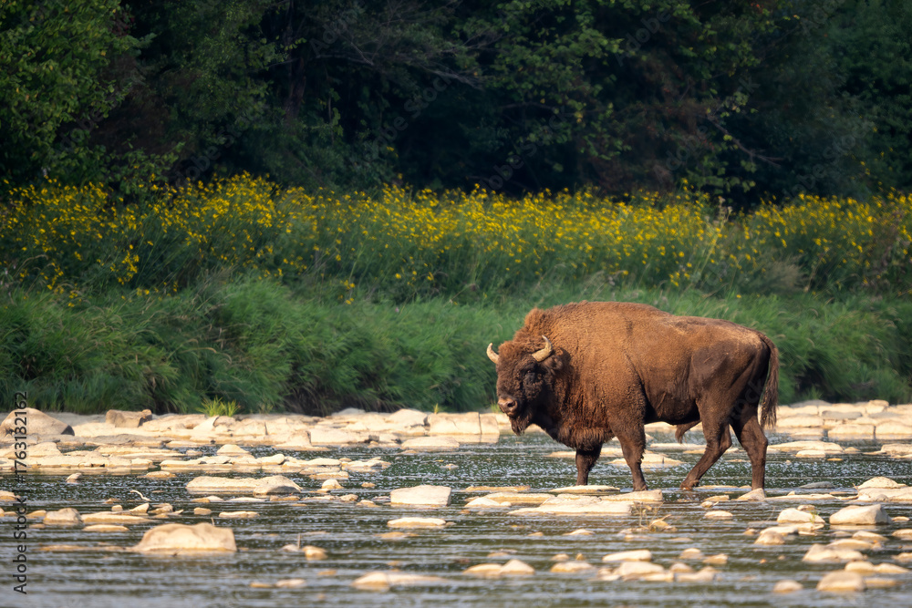 European Bison - Bison bonasus, large European even-toed ungulate native to North and East European forests and woodlands, Poland.