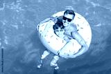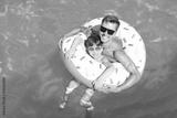 Young man and his son with inflatable donut in swimming pool