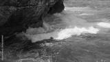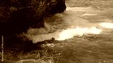 Powerful ocean waves crash against coastal rocks under bright sunlight Ocean energy shows balance between strength and calm symbol of nature resilience and harmony within endless ocean motion