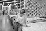 Woman explores beautiful fabric designs in a home decor store during a casual afternoon visit