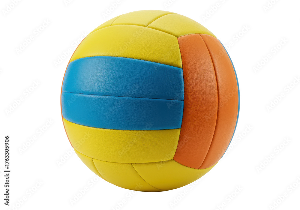 Isolated vibrant yellow, blue, and orange volleyball for recreational sports enjoyment