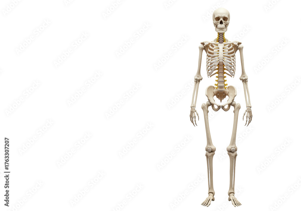Isolated human skeleton showing structure for medical research with full bone structure