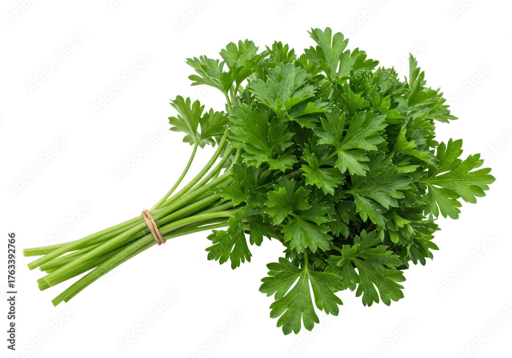 Isolated bunch of fresh curly parsley a common culinary herb for seasoning food dishes