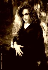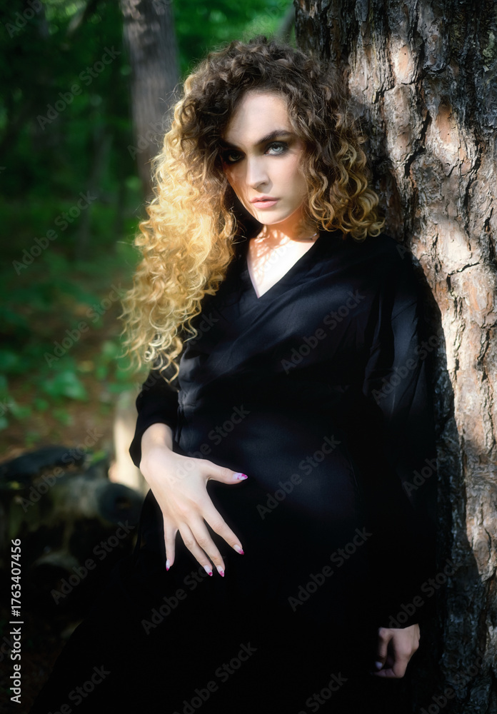 Mysterious woman in nature - embracing shadows.