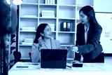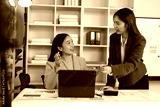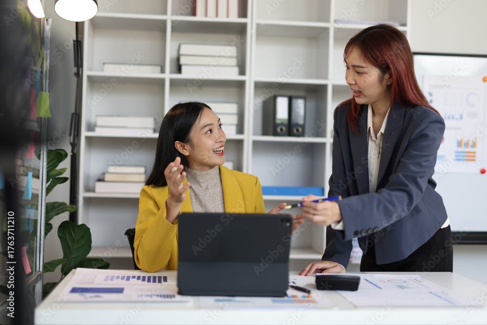 Asian businesswoman discussing and working together using laptop in office meeting room.