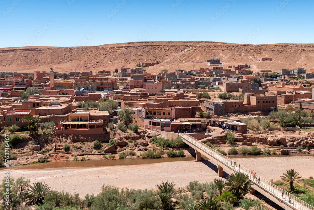 Ait Benhaddou, an ancient city in Morocco in North Africa on a sunny day.