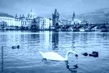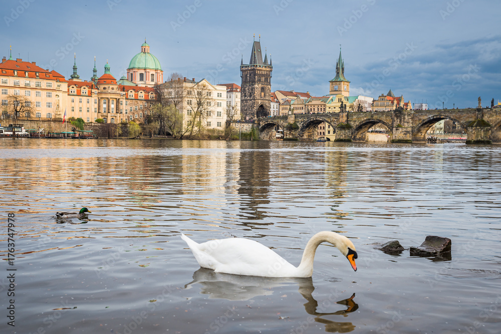 Prague, Czech republic - March 31, 2023. Romantic view on Charles Bridge over Moldau river