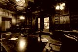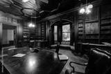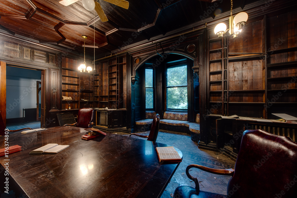 Dark Wood Paneled Library & Center Table - Abandoned Tioranda Mansion and Hospital - New York