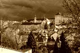 Prague, Czech republic - March 31, 2023. Panorama of Cerninska and Jeleni street on Novy Svet and Hradcany