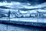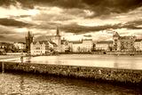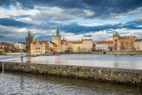 Prague, Czech republic - March 31, 2023. View over river to Smetanovo nabrezi