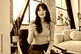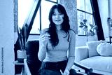 Web cam view of young woman talking looking in camera, online meeting, video call