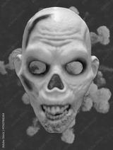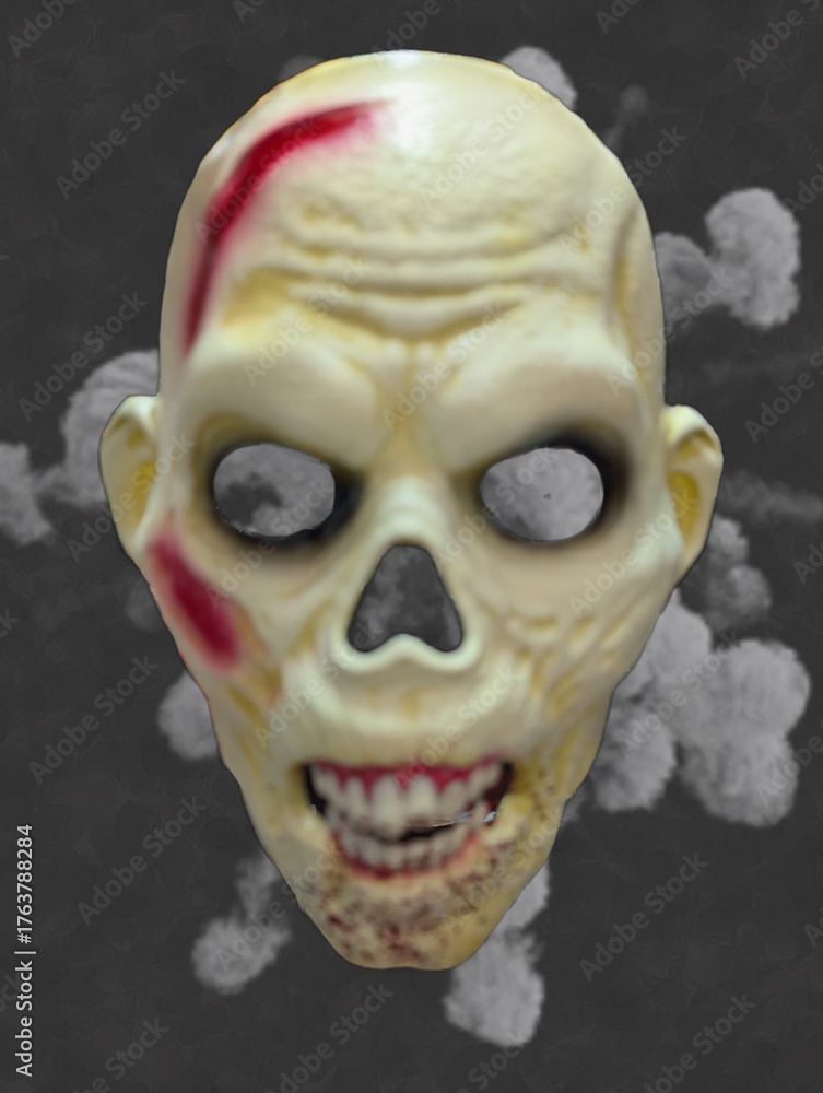 Creepy skull decoration with eerie details perfect for Halloween celebrations and spooky themed events