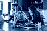 A happy family is cooking together in a bright kitchen, showing joy, teamwork, and love at home