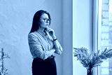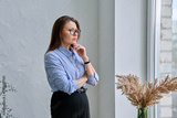 Mature tired, stressed woman standing near window
