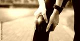 Close-up of woman holding her painful knee with glowing joint effect, showing signs of knee injury, joint pain, or arthritis. Concept of fitness injury, knee strain, and physical discomfort outdoors.