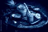 Homemade mango chutney on a dark wooden background