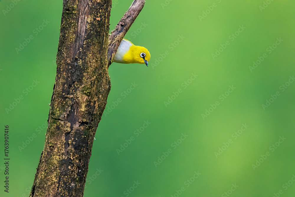 Indian White-eye Bird also called Oriental white Eye , 2 brirds perched on a Tree Branch in Natural Habitat. Birds loves