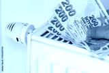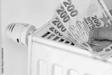 Cold radiator and Turkish money held in hand, concept, energy price increases, Turkish home finances, electricity and gas costs