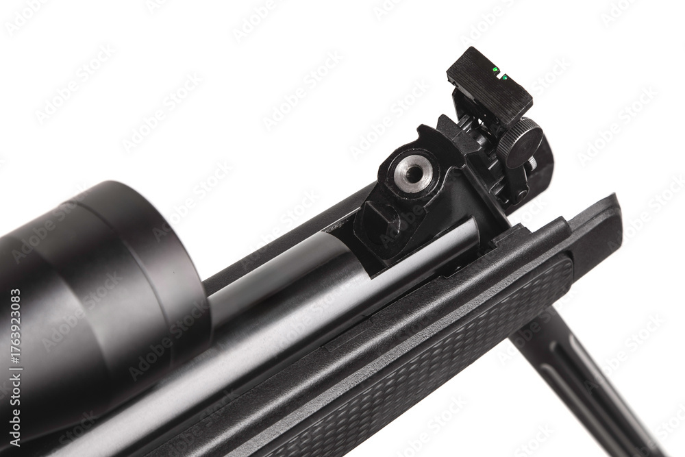 Air rifle breech and sights close-up view.