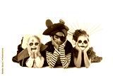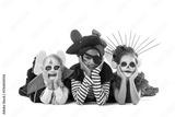 Group of children dressed for Halloween lying on white background