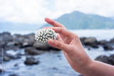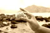 hands holding coral at the beach
