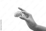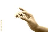 hands holding coral on white background isolated