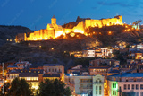 Amazing view of Olt town with Narikala ancient fortress, St Nicholas Church in night Illumination during evening blue hour, Tbilisi, Georgia.