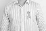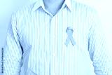 Man with blue Ribbon for concept of blue November, November Prostate Cancer Awareness month, World Diabetes day , Men Health month, International men, Father day. Healthcare and world cancer day