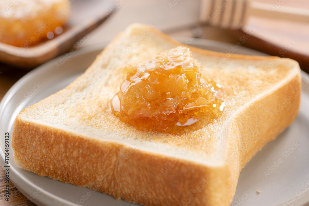 コムハニーをたっぷりのせたハニートーストが並ぶ朝の食卓