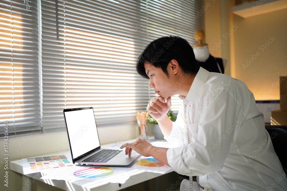 designer choosing using a laptop to work with the color palette.