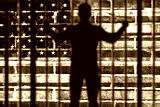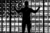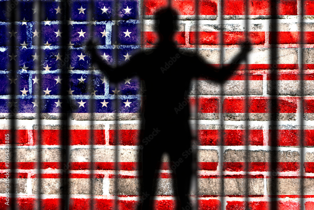 A person in prison with an American flag in the background