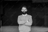 Portrait of a confident young businessman standing with arms crossed and smiling at the camera.