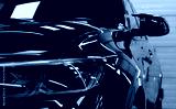 A black premium car in a service garage after cleaning and applying protective varnish to the body