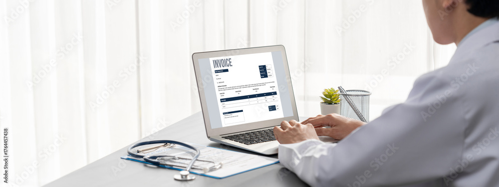 Invoice on computer screen from accounting application. Computer program for financial and budget of corporate business. brisk.