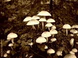CLOSE UP, MACRO: Dense cluster of poisonous Hypholoma fasciculare mushrooms grows from a decaying log covered in green moss. Natural textures, earthy tones and quiet beauty of autumn woodland life.