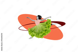 Template sketch image composite artwork collage of chef meal tasty cooking diet young woman ballerina jump dance wear salad dress