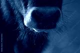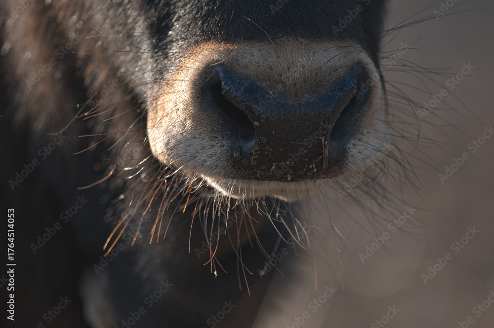 Authentic Cypriot cattle breed showing its wet nose and long whiskers. Akrotiri marsh, Cyprus