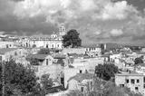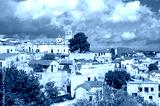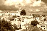 Pano Lefkara village with Church of the Holy Cross overlooking stone houses and mountains in Cyprus