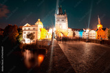 Long exposure shot of Charles Bridge in Prague at the blue hour