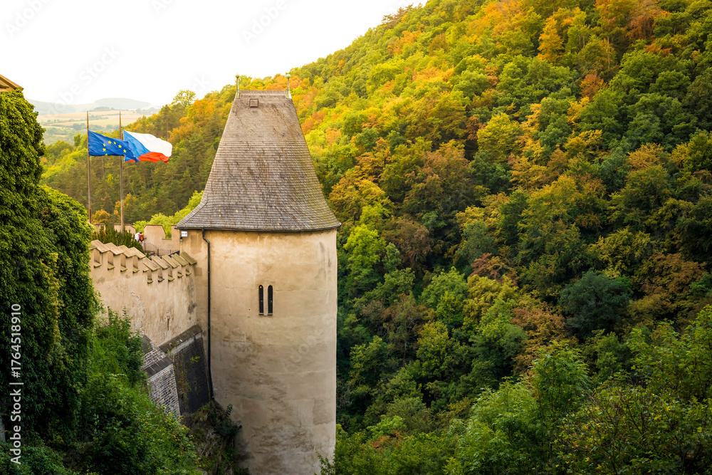 Side tower of Karlstejn Castle. Central Bohemia, Karlstejn village, Czech Republic