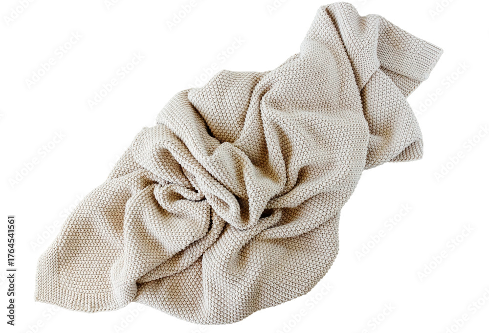 Beige knitted blanket isolated png file on trahsparent background. Cutout object