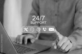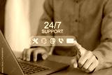 Continuous customer service concept Continuous service without stopping throughout the day or week, 24 hours a day, 7 days a week.
