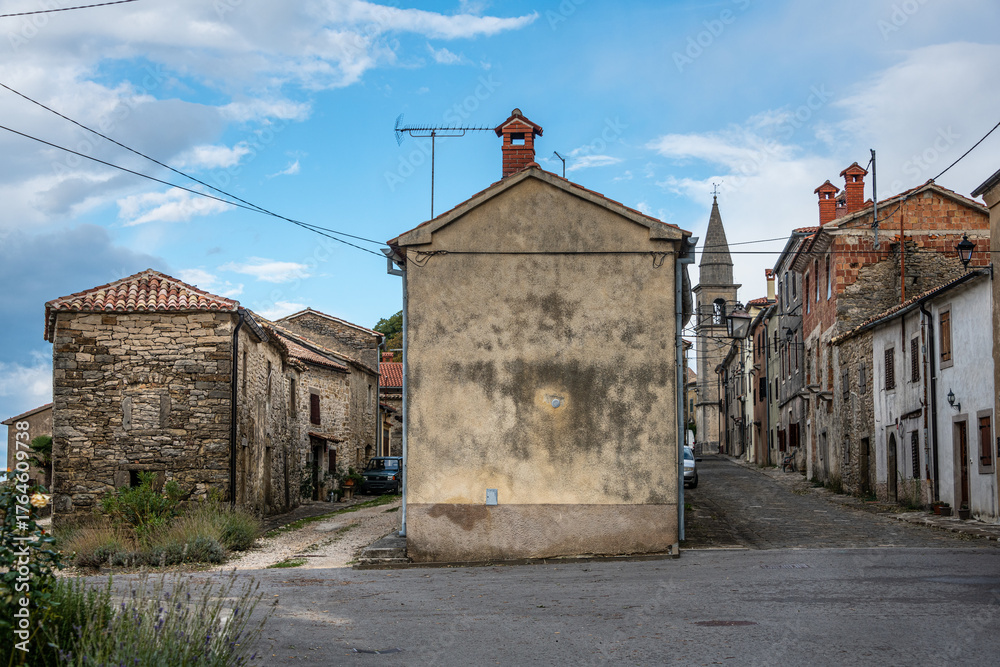 Streets and houses in Draguć Town in Istra, Croatia